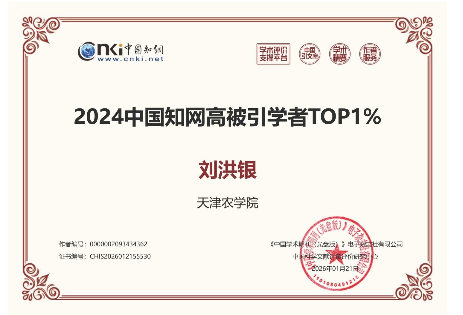 近日,作为全球最大的中文文献数据库和知识服务平台之一,中国知网(中国科学文献计量评价研究中心)发布了“2025全国高被引学者”名单,我校人文学院刘洪银教授,继2024年首次入选后,再度进入农林经济管理学科“2025全国高被引学者TOP1%”名单。